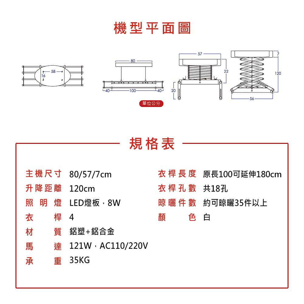 居家旗艦款TCM-180-MS+ 電動升降曬衣架